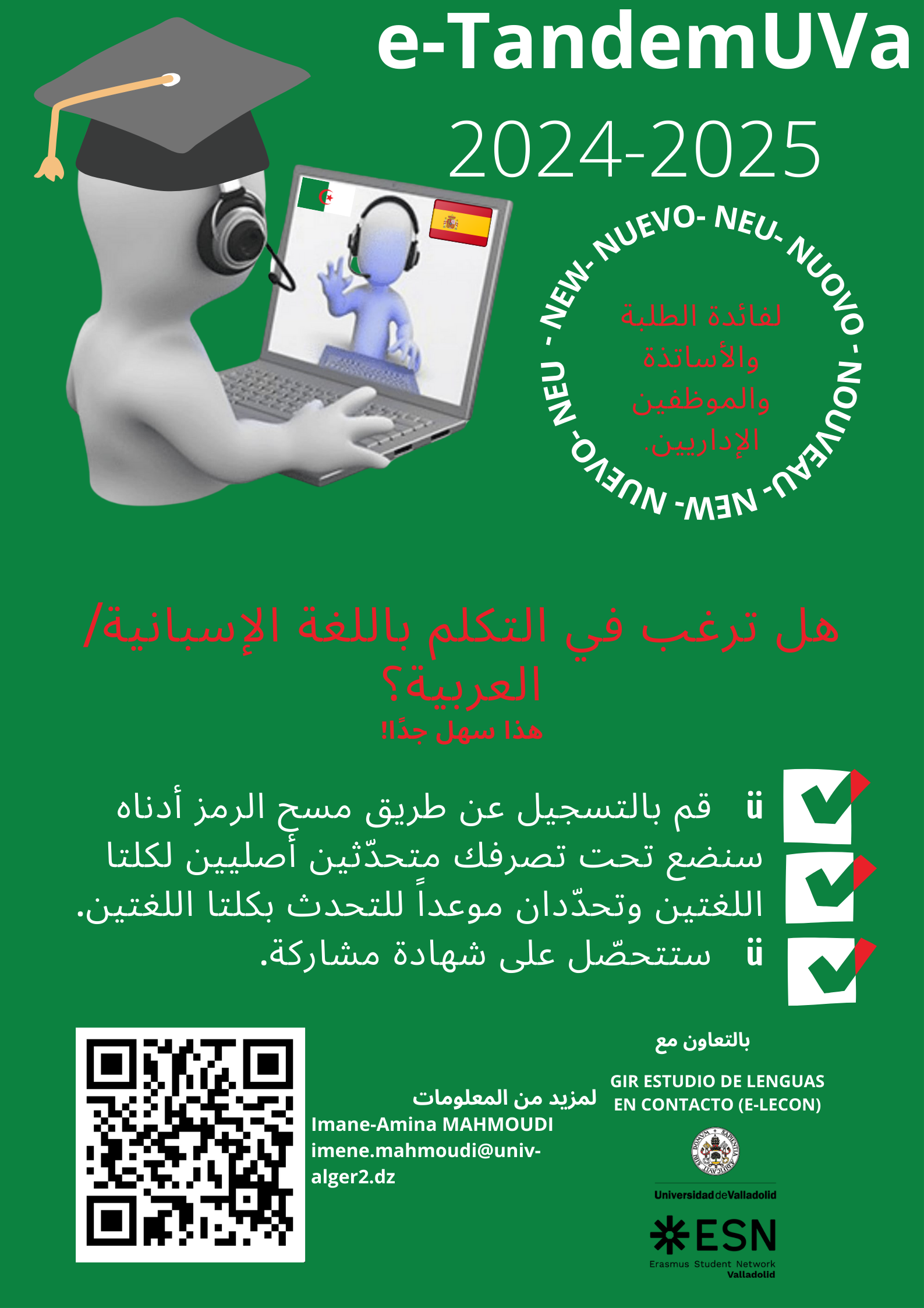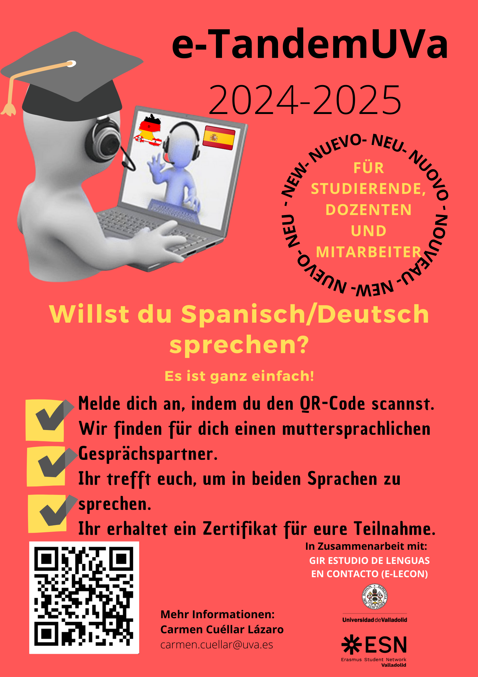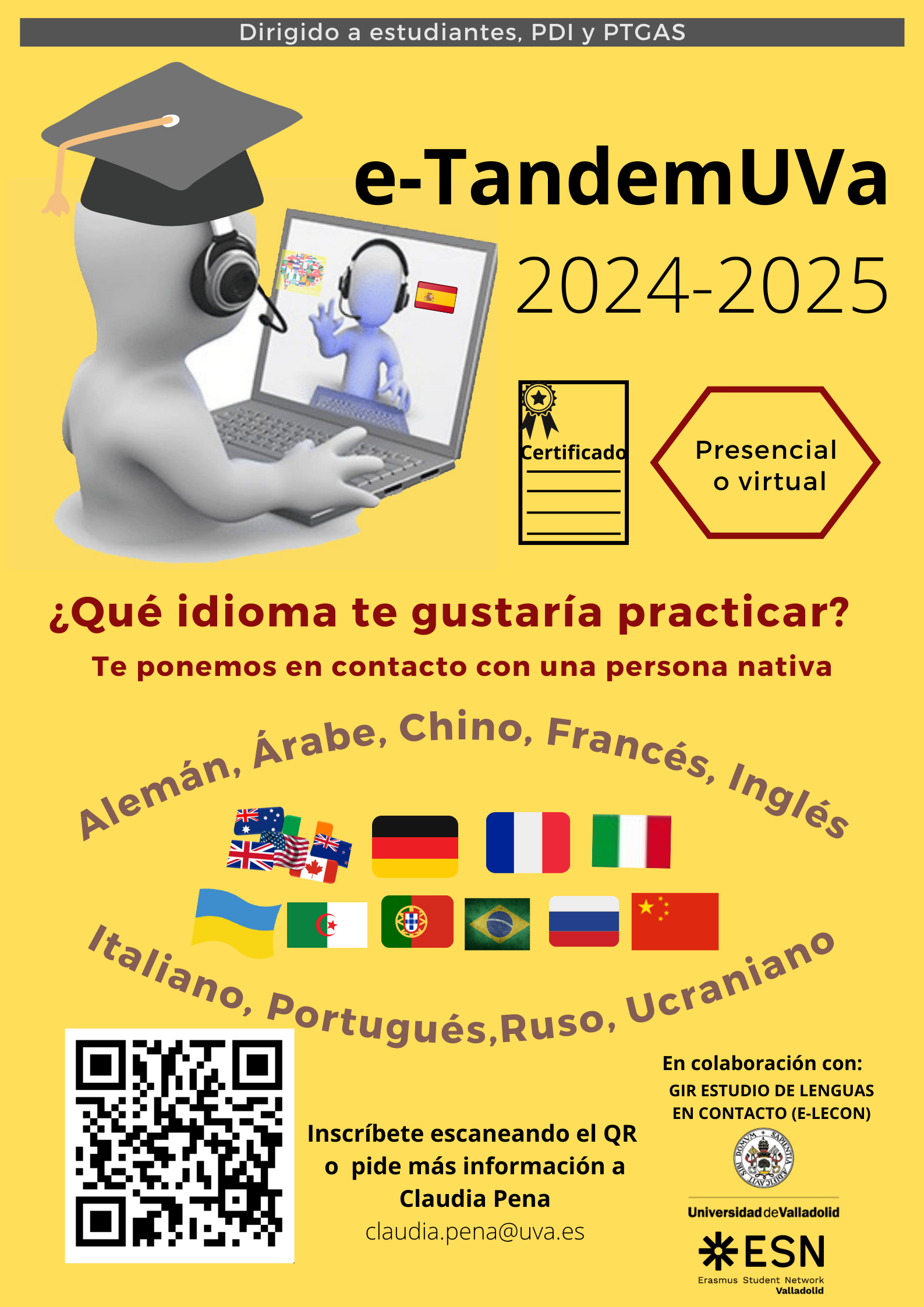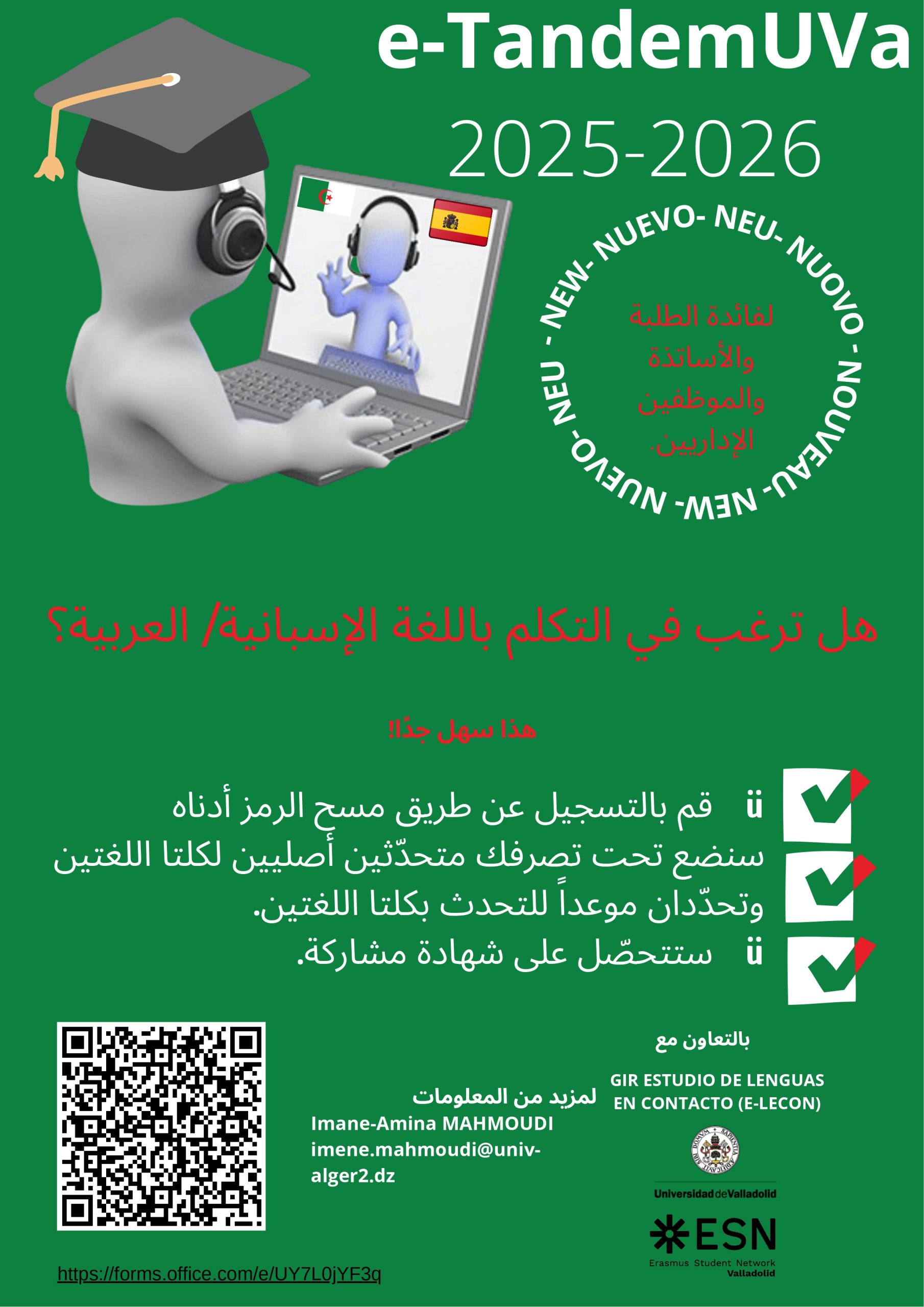 El PID e-TandemUVa es un Proyecto de Innovación Docente de la Universidad de Valladolid (UVa) que se inició en el curso 2019-2020 con el objetivo de fomentar y facilitar el aprendizaje de idiomas de los estudiantes de la UVa. El aprendizaje de idiomas en tándem es un método basado en el intercambio lingüístico mutuo por parejas, en el que cada participante es un hablante nativo de la lengua que el otro desea aprender.